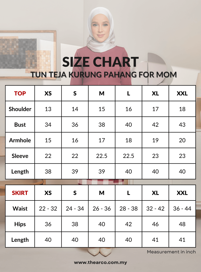 Size Chart - Tun Teja Kurung Pahang for Mom