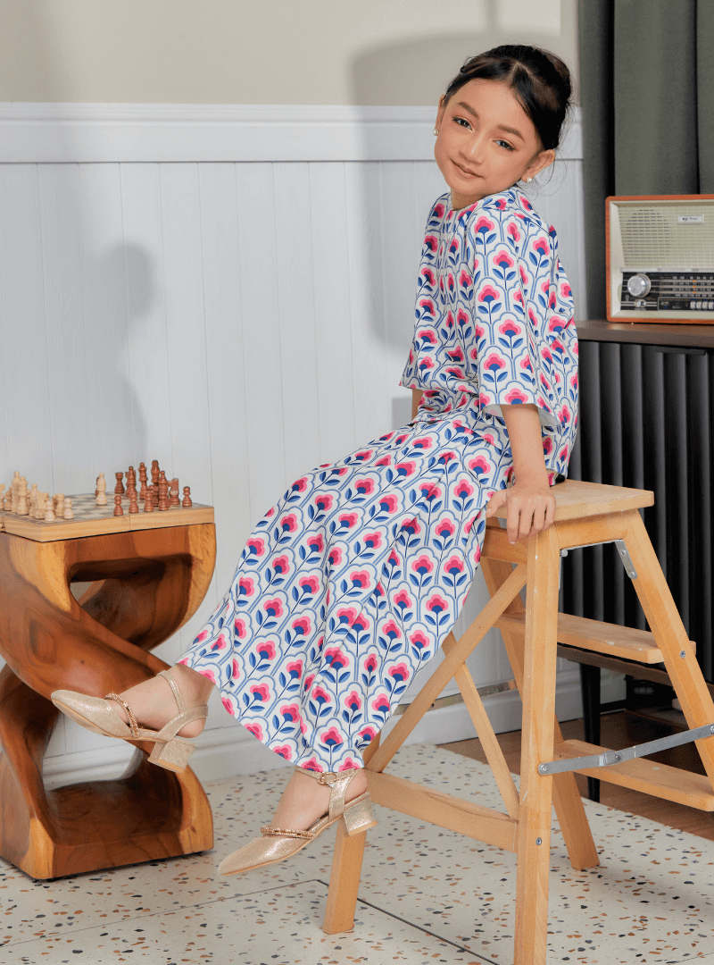 - Ease of Movement: The loose-fitting design allows for easy mobility, making your daughter’s Hari Raya activities more fun & joyful.